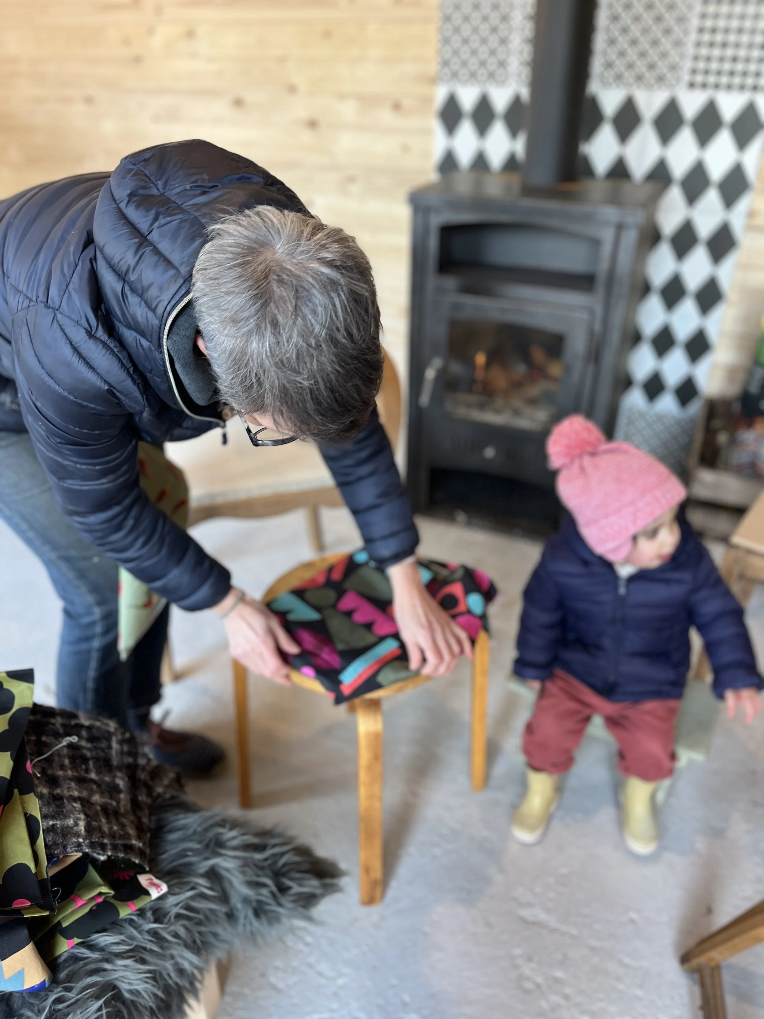 Venez y découvrir mes tabourets rénovés avec de jolis tissus colorés ainsi que les transats chiliennes de la marque française Les Toiles Du Soleil.